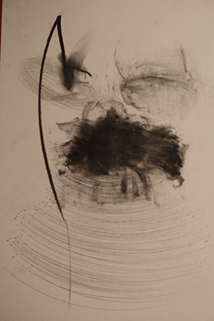 Τα σχέδια που παρουσιάζονται είναι φτιαγμένα με κάρβουνο και μολύβι σε χαρτί. Ο καλλιτέχνης τα δημιουργεί αμέσως μετά τη λήξη της performance και την αφαίρεση της μάσκας, με οδηγό την αίσθηση όλων περίεργων πραγμάτων που έφερε μέχρι πρότινος στο πρόσωπο του. Τα έργα αυτά αναπτύσσονται σαν ένα τοπίο της αίσθησης, σαν ένας εξπρεσιονιστικός ζωγραφικός χώρος, σαν αυτοπροσωπογραφία του καλλιτέχνη και σαν πορτρέτο του χαρακτήρα που υποδύθηκε, αλλά και σαν μια επισήμανση του λεπτού χώρου μεταξύ της μάσκας και του προσώπου.