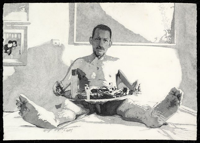 Ο Νίκος Παπαδόπουλος καταφέρνει να σκηνοθετήσει τον εαυτό του στην παράσταση της ζωής του, που μας αποκαλύπτει ευγενώς, με ποιητική ματιά κάθε ερωτική εισβολή. Μου δείχνει ένα έργο του στην έκθεση. “Είναι φύλλο χρυσού στο βάθος, το είδες; Μου λέει χαμογελώντας. Σαν περιτύλιγμα από σοκολατάκι!” Του απαντώ.** Και τον παρακολουθώ να περιφέρεται στον χώρο, με ένταση, αεικίνητος εξηγώντας μου τα έργα και τα μυστικά τους και τον ερωτώ με αφέλεια: “Νίκο πως μπορείς να κάθεσαι ακίνητος με τις ώρες, να κάνεις τρυπούλα - τρυπούλα, είναι δουλειά ωρών με απίστευτη συγκέντρωση και αφοσίωση και πόνο όλο αυτό;***. Δούλευες ακίνητος δεκατέσσερις ώρες τη μέρα, μου είπες… Πως το καταφέρνεις;