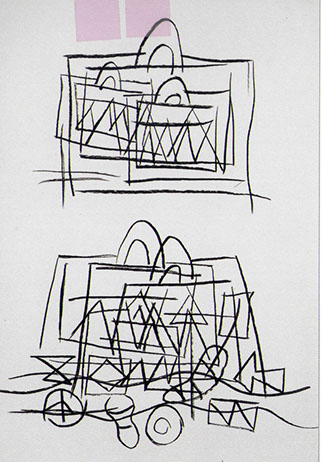 Τη δεκαετία του '70 καθιερώνεται η βαλίτσα που θα αποτελέσει σήμα κατατεθέν για το έργο του και θα τον καταστήσει αναγνωρίσιμο στο ευρύ κοινό. Τα έργα που φιλοξενούνται στην έκθεση, ζωγραφική, κατασκευές και σχέδια υπογραμμίζουν τη συνέπεια της γραφής του, την ποικιλομορφία του έργου του, τη στάση του απέναντι στο ερώτημα που ονομάζεται τέχνη και το παιχνίδι που ονομάζεται ζωή.