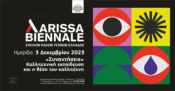 Στο πλαίσιο διοργάνωσης της Μπιενάλε των Αποφοίτων των Σχολών Καλών Τεχνών της Ελλάδας, στη Λάρισα, θα πραγματοποιηθεί Ημερίδα με τίτλο “Συναντήσεις” Καλλιτεχνική εκπαίδευση και η θέση του καλλιτέχνη” στις 3 Δεκεμβρίου 2023 με δύο ξεχωριστές θεματικές ενότητες.