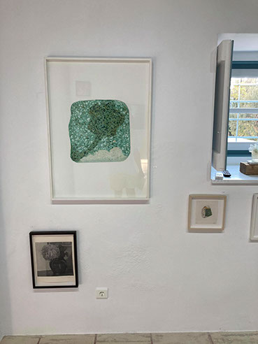 The second way is of course the window, through which one has a view of the world from a distance, which allows full perception and supervision and brings with it knowledge, wisdom and that which the ancients described as ‘’theory’’. In the work of an artist like Lizzie Calligas, however, who has sat for years gazing out of her balcony window on Spetses, concentrating on everything she sees, like the wise man uses the microscope or the telescope, there is no place for theory! Theory is the intrinsic supervision of a continuous reality of the world and of movements, which change ceaselessly, but happen in the same place, in plain view of she/he who observes. She/he who supervises the form of the world by observing. Thus, Lizzie Calligas, passes through the world of her family, through three generations of artists who lived and worked in that house, to gaze at the sea spreading out before her. Her entire work examines the miniscule transformations and changes of light, of people, of things, of plants in plant pots, of children on the beach, of islands in the distance, of mosaics formed by pebbles in gardens and pebbles washed up on the beach by the sea, under the house, outside the window, at the same spot, every day, every hour, at the edge of the horizon like in a theatre gallery or a castle watchtower, and she sees everything that happens and that constitute the coordinates of life and the perception of the world.