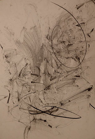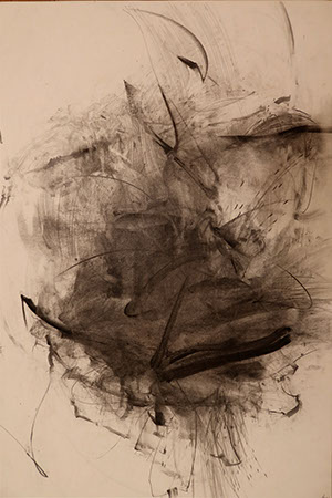 Τα σχέδια που παρουσιάζονται είναι φτιαγμένα με κάρβουνο και μολύβι σε χαρτί. Ο καλλιτέχνης τα δημιουργεί αμέσως μετά τη λήξη της performance και την αφαίρεση της μάσκας, με οδηγό την αίσθηση όλων περίεργων πραγμάτων που έφερε μέχρι πρότινος στο πρόσωπο του. Τα έργα αυτά αναπτύσσονται σαν ένα τοπίο της αίσθησης, σαν ένας εξπρεσιονιστικός ζωγραφικός χώρος, σαν αυτοπροσωπογραφία του καλλιτέχνη και σαν πορτρέτο του χαρακτήρα που υποδύθηκε, αλλά και σαν μια επισήμανση του λεπτού χώρου μεταξύ της μάσκας και του προσώπου.