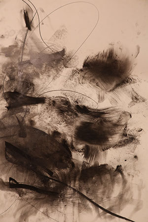 Φίλιππος Τσιτσόπουλος, Drawings abour the marks of my face after wearing heavy live nature elements, 40Χ55 εκ., μολύβι, κάρβουνο και χρωστική σε χαρτί Norfolk 250 γρ., 2017-18 courtesy Eleftheria Tseliou Gallery. Athens, Filippos Tsitsopoulos