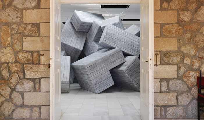 Δεν θα βρείτε ούτε ατομικά καθίσματα ούτε μια σταθερή αρχιτεκτονική στη Βουλή των Σωμάτων. Έχουμε αποφύγει την αντιμετώπιση του κοινού ως αισθητικού επισκέπτη ή νεοφιλελεύθερου καταναλωτή. Έχουμε επίσης απορρίψει τη δημοκρατική μυθοπλασία του ημικυκλικού αμφιθεάτρου. Διεκδικούμε –μαζί με τον Oskar Hansen– το ευκταίο της «ανοιχτής μορφής» στην πολιτική. Η μαλακή αρχιτεκτονική του Ανδρέα Αγγελιδάκη, που αποτελείται από 68 μπλοκ ερειπίων (τα ερείπια ενός δημοκρατικού κοινοβουλίου;) μπορεί να συναρμολογηθεί και να τοποθετηθεί εκ νέου με άπειρους τρόπους, δημιουργώντας πολλαπλές εφήμερες αρχιτεκτονικές για τη Βουλή των Σωμάτων. Είστε ευπρόσδεκτοι να συμμετάσχετε στην καθημερινή διαμόρφωση αυτού του πολιτικού θέατρου, που αμφισβητεί την τοποθεσία, την ιεραρχία, την ορατότητα, την κλίμακα…