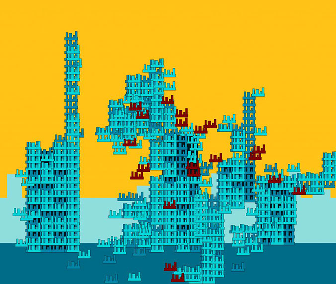 Architectural elements, which pervade the language of art with increasing frequency, delineate the creative work using common features which are familiar to the viewer. The constantly changing social conditions and the cultural osmoses that affect the cityscape are standard components in the discourse between space-place and collective memory.