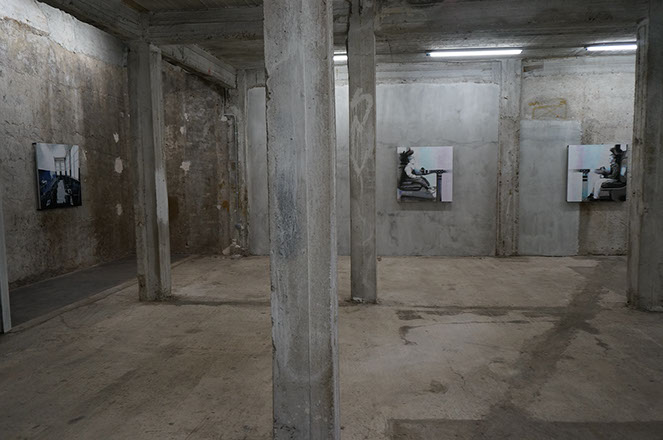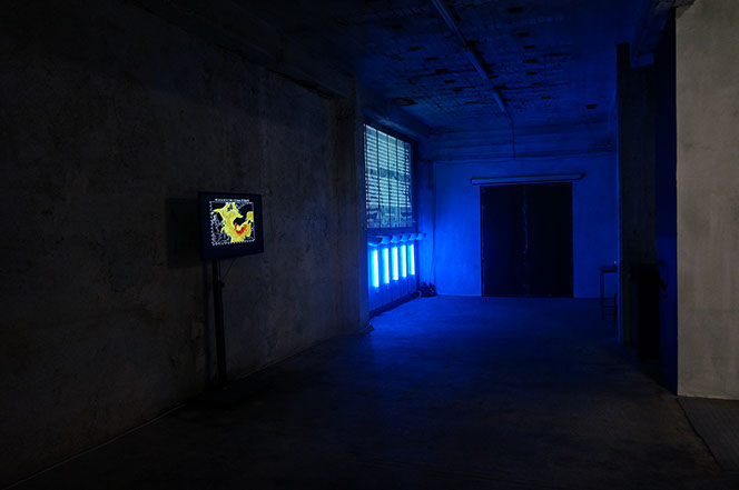 μέρη, με ζωγραφική και σωλήνες neon, συνόδευαν πίνακες με επεξεργασμένες